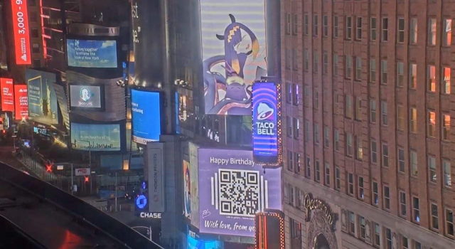 可以看到時代廣場旁路透社的大樓上螢幕,有著各式各樣的 Ina 插圖輪播,下方螢幕還有巨大的 QRCode 供大家掃描。以這樣的方式慶祝喜愛的 Vtuber 生日,也讓這群粉絲表示 : 「我們創造了歷史的一刻 ! 」