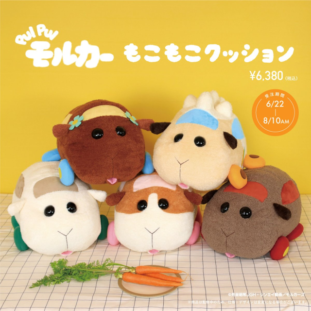 2021 年 1 月逐格動畫《天竺鼠車車》成功席捲日、台兩地話題,成為今年上半年最熱門的超人氣動畫作品之一。近期與販售諸多創作者商品的日本 CRECO SHOPPING 平台合作,販售《天竺鼠車車》的靠墊娃娃,將五位主角車車一次推出,約 25cm×26cm×40cm 的大小讓你能抱著他入睡。售價為 6,380 日圓 ( 稅入 ),目前可於 CRECO 官方網站預購,預計今年 9 月會正式發售。