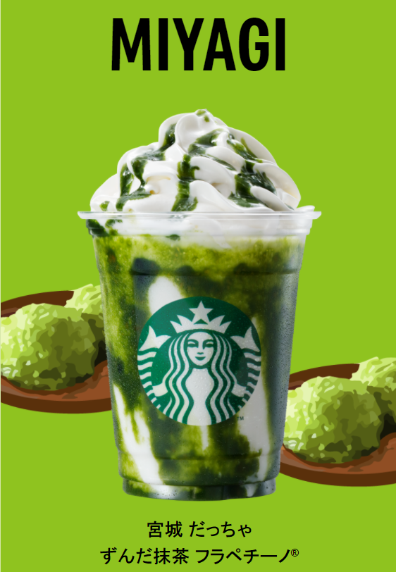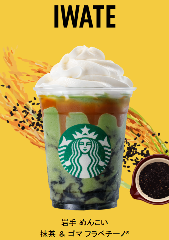 此次日本星巴克推出的「47都道府縣」限定口味星冰樂企劃,是根據每一都道府縣的當地特色及文化,所特別打造的47種特殊風味。例如,北海道及東北地區,則是以北海道生產的玉米與牛奶,所組合成的「北海道牛奶玉米星冰樂」;而宮城縣的「宮城抹茶毛豆泥星冰樂」,則是以當地最為盛產的毛豆,與星巴克的人氣商品「抹茶奶油星冰樂」作為主打。