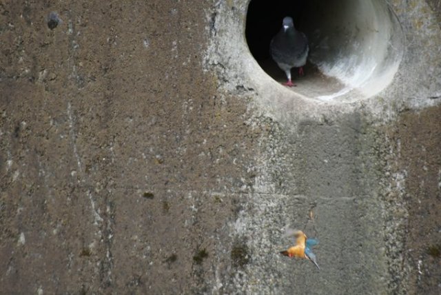 根據推主的說法,鴿子並沒有主動傷害翠鳥,只是從排水管深處走出來而已。但光是這樣,似乎就把翠鳥嚇得不輕、讓牠直接離開閃避。而這樣的畫面也讓網友不由得腦補,這完全就是最終BOSS登場的場景嘛。