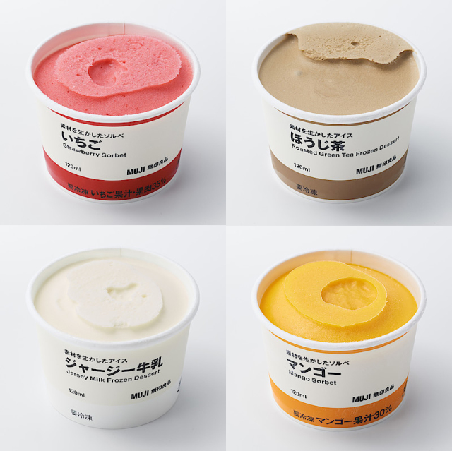 而日本無印良品繼先前4月推出包含草莓、芒果、牛奶及焙茶等「充分利用食材的冰淇淋(素材を生かしたアイス・ソルベ)」系列冰淇淋後,今次官方又緊接推出全新四款不同口味的冰品系列。