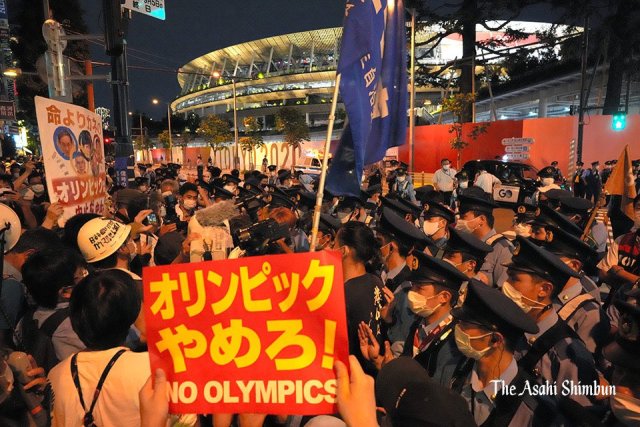 儘管延遲一年的東京奧運,總算在2021年7月23日這天正式開幕,但由於疫情仍在持續瀰漫全球的狀態下,在奧運會場場會依舊可以看到,不少日本民眾是持著抗議牌子與旗幟,要求日本政府立即停辦奧運,以免讓疫情更加惡化。