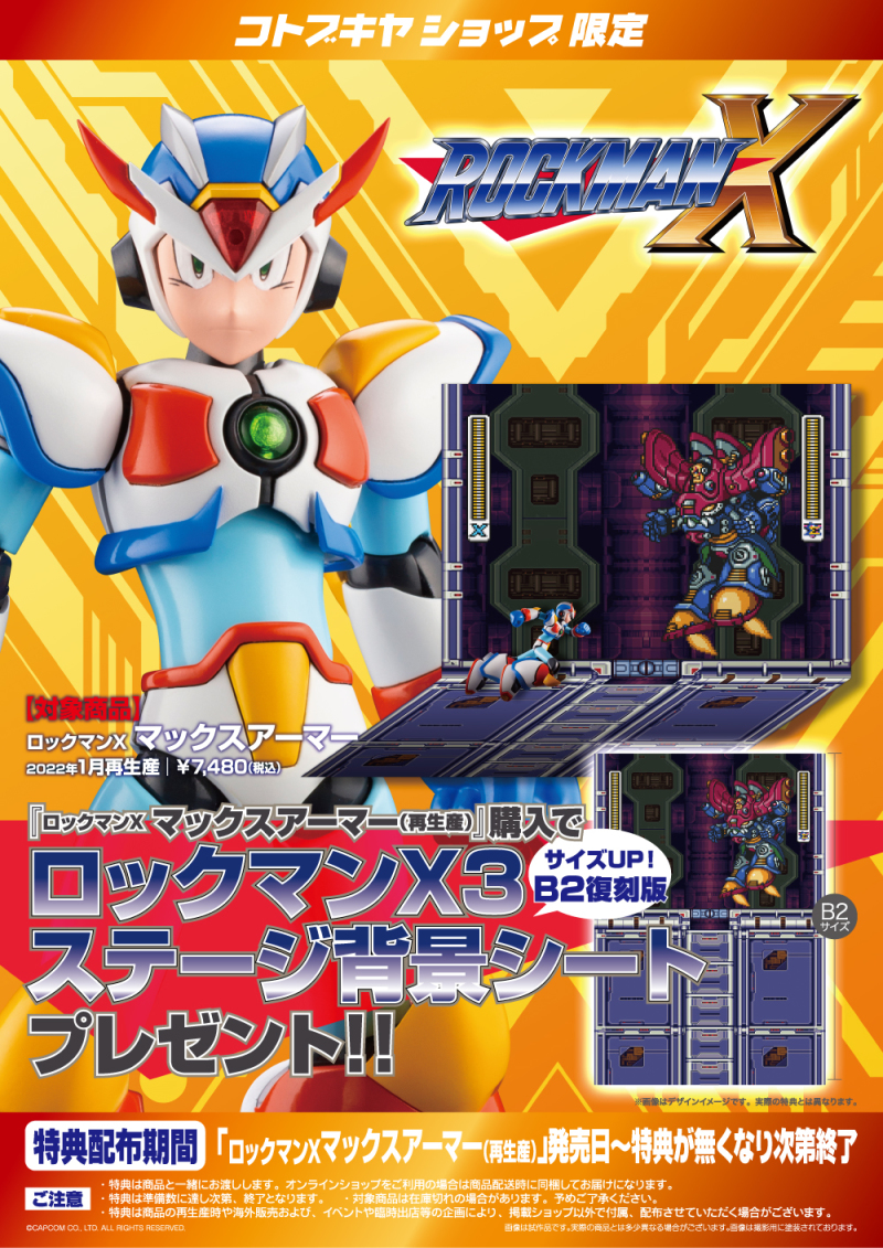 ▼於壽屋線上商店訂購此附有限定特典「洛克人X3 遊戲舞台背景」。