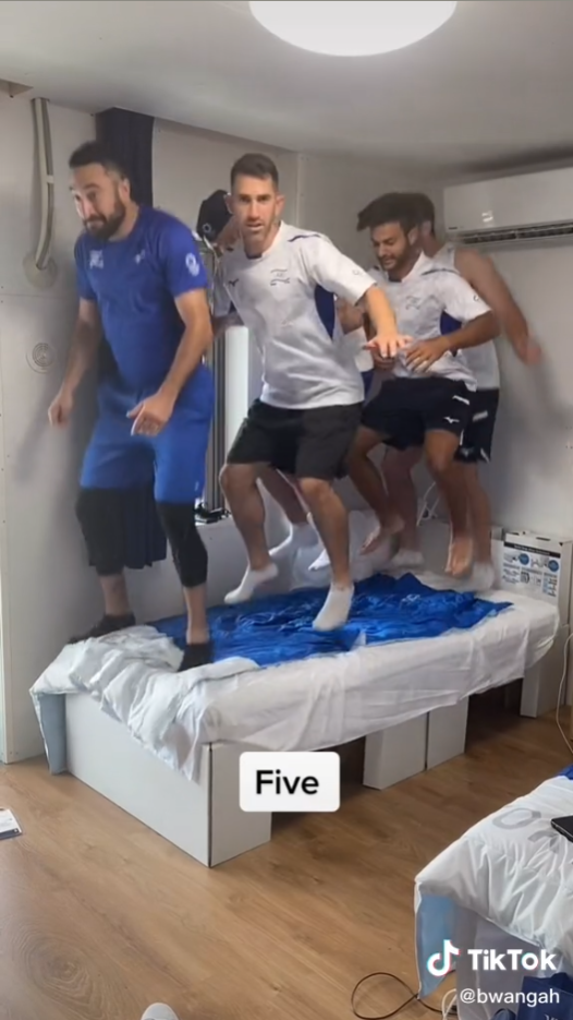 日前以色列棒球選手Ben Wanger就與其他九位奧運選手,在TikTok上拍攝了一部測試床鋪牢固度的影片,來測試這張以厚紙板所打造的環保紙床,究竟能夠乘載住幾個人的重量。