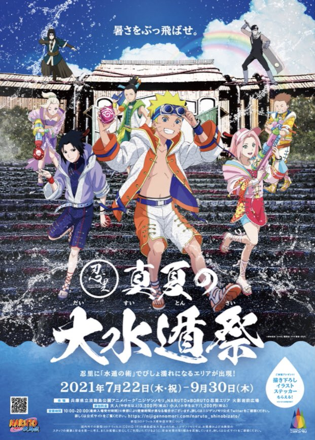 兵庫縣的「二次元之森」以《火影忍者》主題樂園「忍里」聞名,目前「NARUTO&BORUTO」活動預告了夏日主題,以7月22日到9月30的「忍里・真夏的大水遁祭」為題。