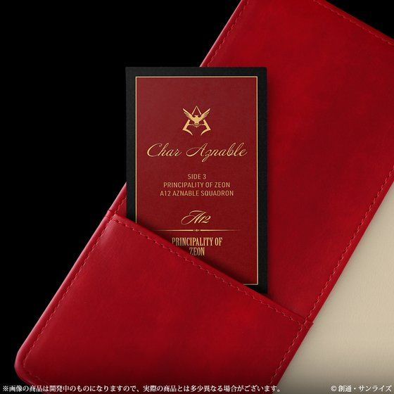 這次與先前設計不同,改以紅色合成皮料作為手帳外層包覆,並透過拋光金色的扣具固定,展現出尊榮華貴的氣息。配上皮料上的夏亞專屬徽章壓圖,十足展現出紅色彗星個人的專屬魅力。
