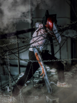 Coser 丸山カネキリカ非常擅長自己製作 Cosplay 道具,透過自己精巧的手工藝,讓淀治化身為鏈鋸惡魔時的模樣徹底還原,想必許多參加過 Cos 的朋友都知道製作道具是非常耗腦的功夫活,總是想盡辦法弄出最能還原的樣貌。