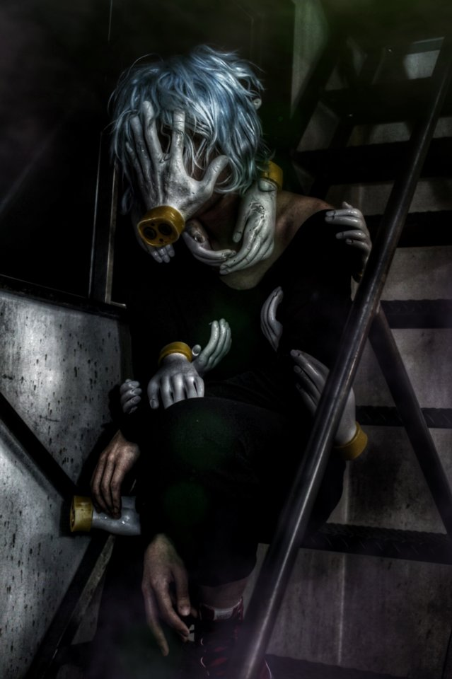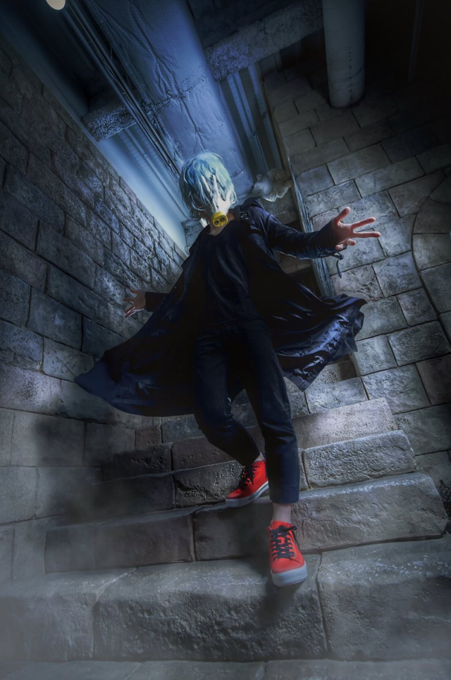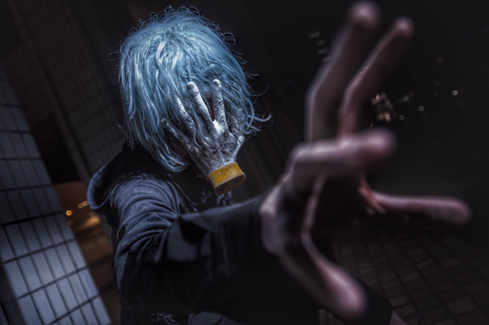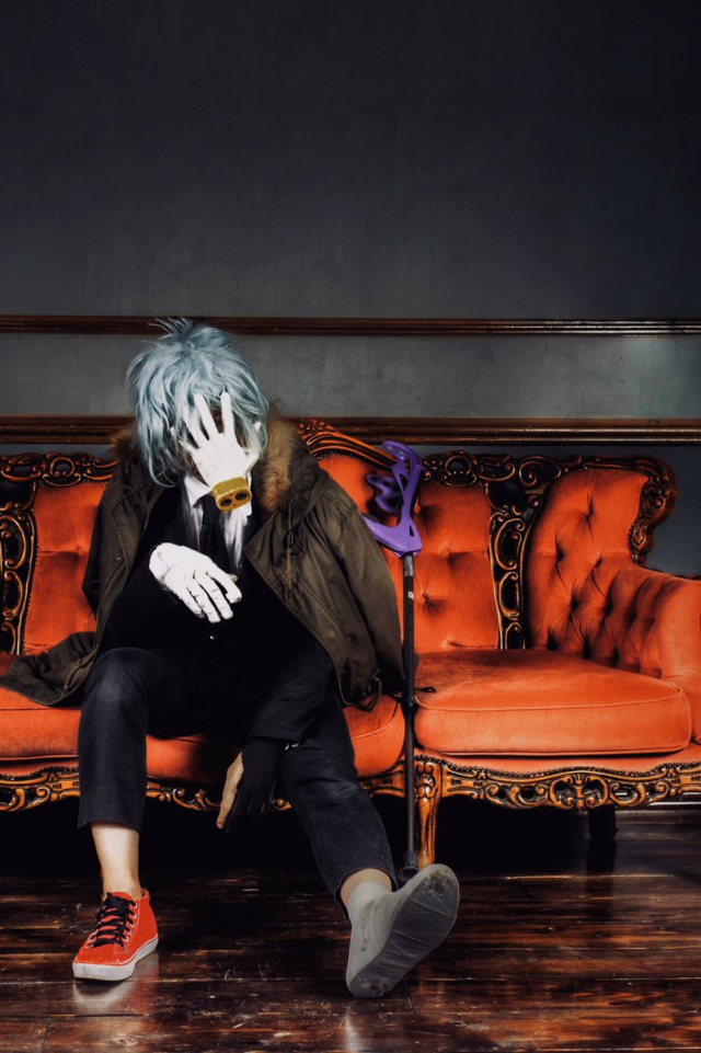 另外,丸山カネキリカ先前也有貼出 Cos 《我的英雄學院》 死柄木弔的作品,同樣以獵奇的造型呈現,透過自行製作的道具裝扮,一樣展現出死柄木弔詭譎讓人害怕的氛圍。