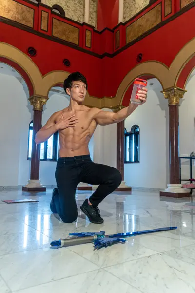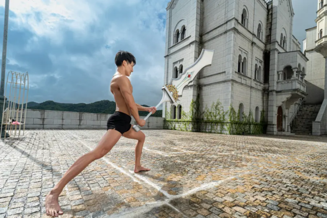 這次以「轉生異世界」為題材,讓肌肉猛男拿起戰鬥的巨劍,在異世界世界觀的背景下拍攝,呈現肌肉勇者在異世界中冒險奮鬥的氛圍。