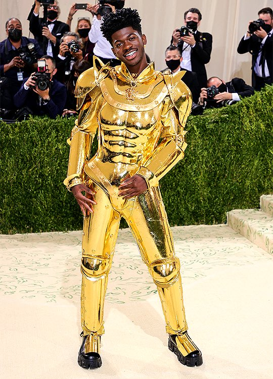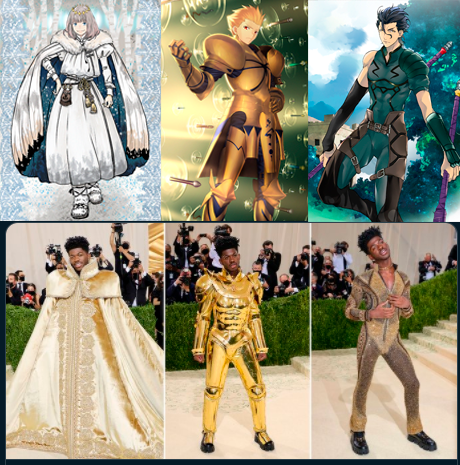 美國新生代饒舌歌手 Lil Nas X 日前出席 9 月舉辦的時尚界盛事 Met Gala,有眾多知名人物在這個盛大慶典中出席。他穿上了「金閃閃」的 Versace 金盔甲造型服裝現身,自己在會後還在個人推特上放上與動畫遊戲作品《Fate/Grand Order》吉爾伽美什的照片,自己有如「最古老的英雄王」引發話題。