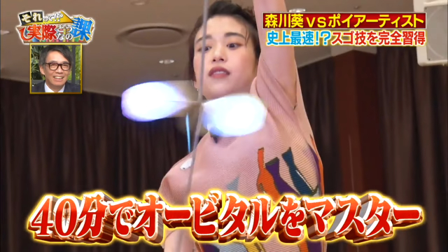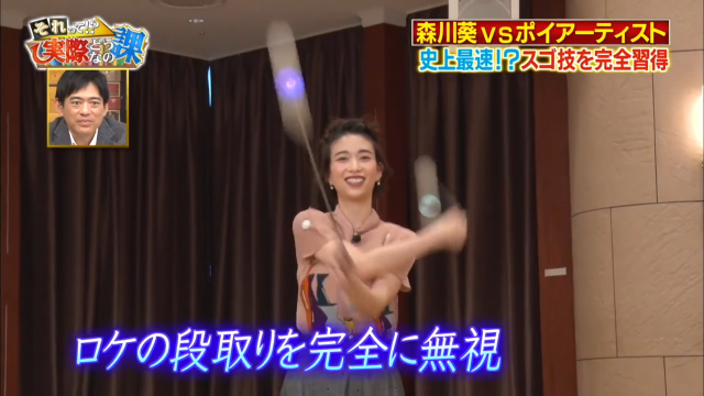 該說是對森川葵來說太過於容易,還是真的這地球上的技能都已經難不倒她了?一直以來在綜藝節目《それって!?実際どうなの課》成功挑戰各項高難度技術的「拷貝忍者」森川葵,在嘗試過噴畫、轉筆等新功夫後,本周節目中又再度邁向新高度,學習我們總能在網路上看到的專業藝術表演「波伊舞」。
