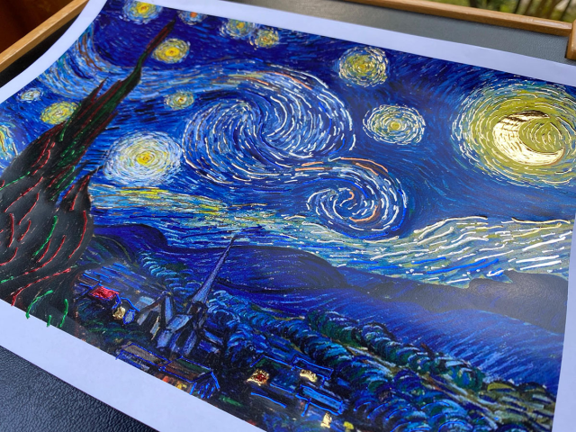「燙金」通常需要透過專業人士加工才能完成,只靠個人在家實行事很困難的,而這支筆的出現則讓繪者們更能在家繪畫時增添新點子,只需透過商品附贈的金箔和裝飾筆並用筆將金箔拓印到畫作上就完成。