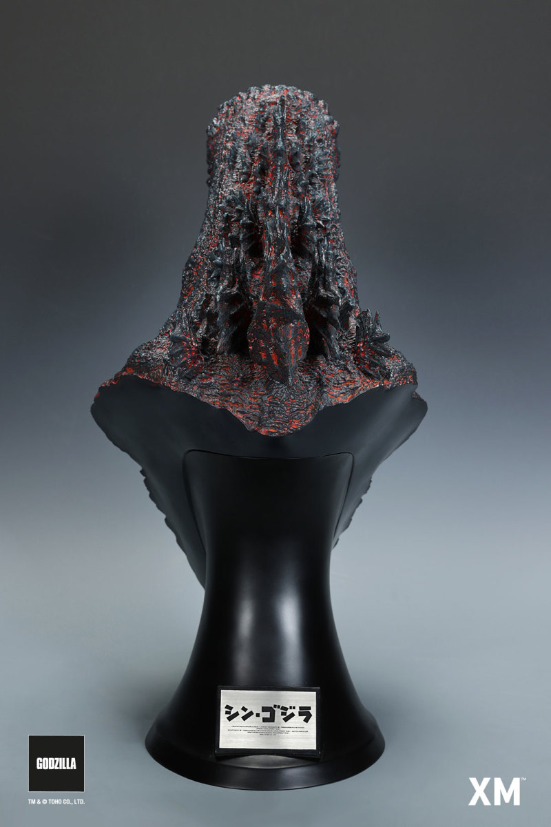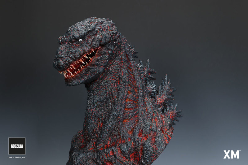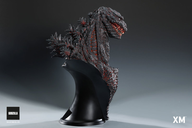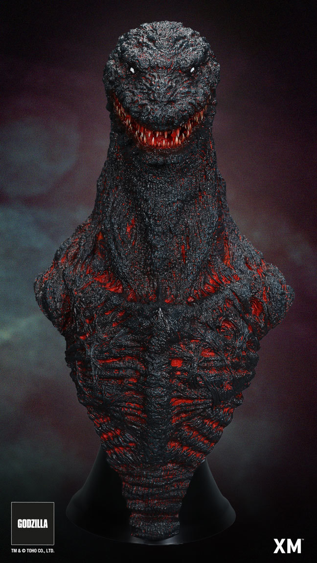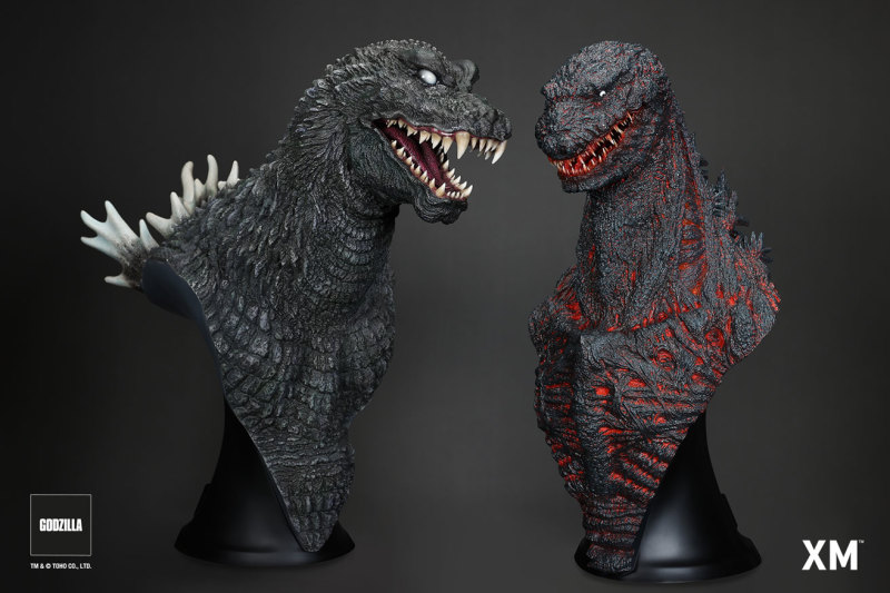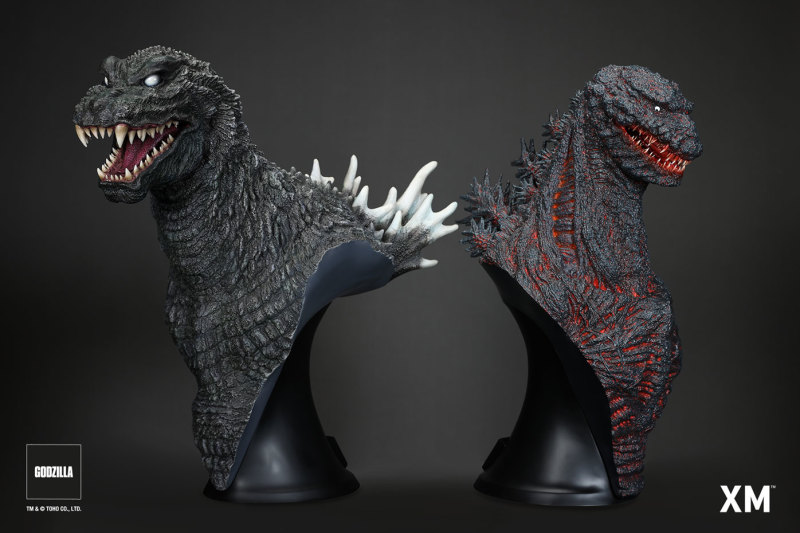 「XM Studios 正宗哥吉拉胸像」,延續胸像系列,由 XM Studios 概念化和詮釋、日本造形作家田中健一擔任建模設計,將恐怖頭部造型、小而銳利的眼珠以及全身如苦瓜般的詭異皮膚紋路、血盆大口等特徵徹底雕塑再現!表皮施以瀝青般光澤的黑色,內部透出不祥的血紅色,營造不斷釋放出放射性物質的狀態。