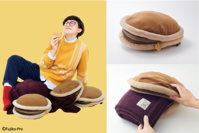 ▼可把毯子收納在銅鑼燒內的「絨毯抱枕」