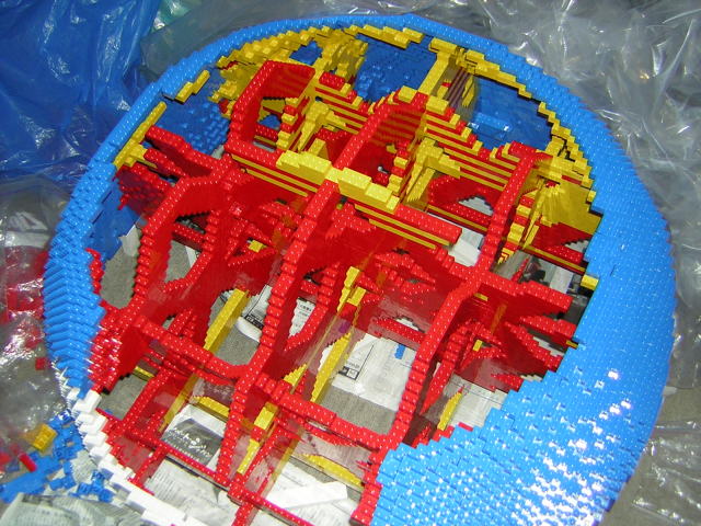 除了一般看到的外表外,更大的亮點是在裡面有著相當複雜的「桁架」骨架,「桁架」是一般在實際建設大型橋梁或是巨蛋會使用到的工法。如果少了這些「桁架」骨架,整體很有可能會因為積木本身的重量而垮掉。許多網友也對三井淳平在高中時期就懂得這個建築工法感到相當欽佩。