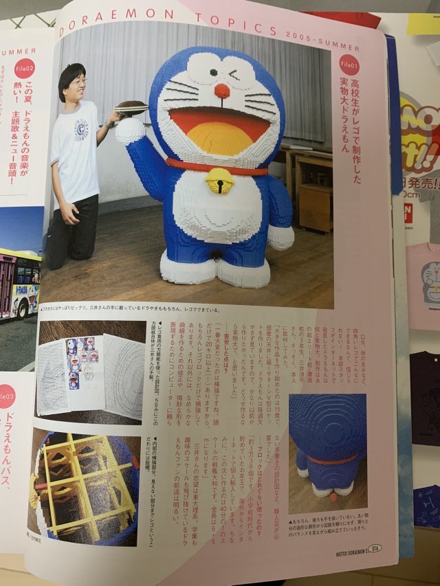 據日媒《ねとらぼ》報導,三井淳平本身就是哆啦A夢的粉絲,以前就想著總有一天要用樂高重現。高中時正好蒐集的藍色積木數量增加,就決定開始計畫實現想法。最後花了 4 個月、總計約 4 萬塊樂高積木打造出這個等比例超巨大哆啦 A 夢樂高模型,並在高中三年級的校慶中展出。