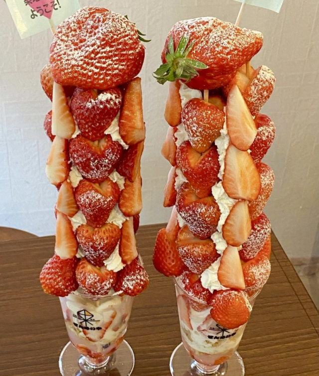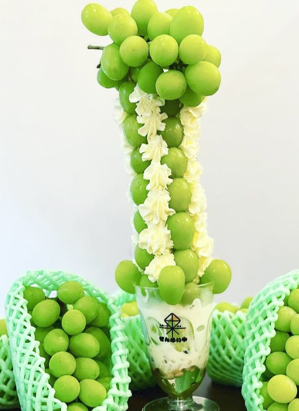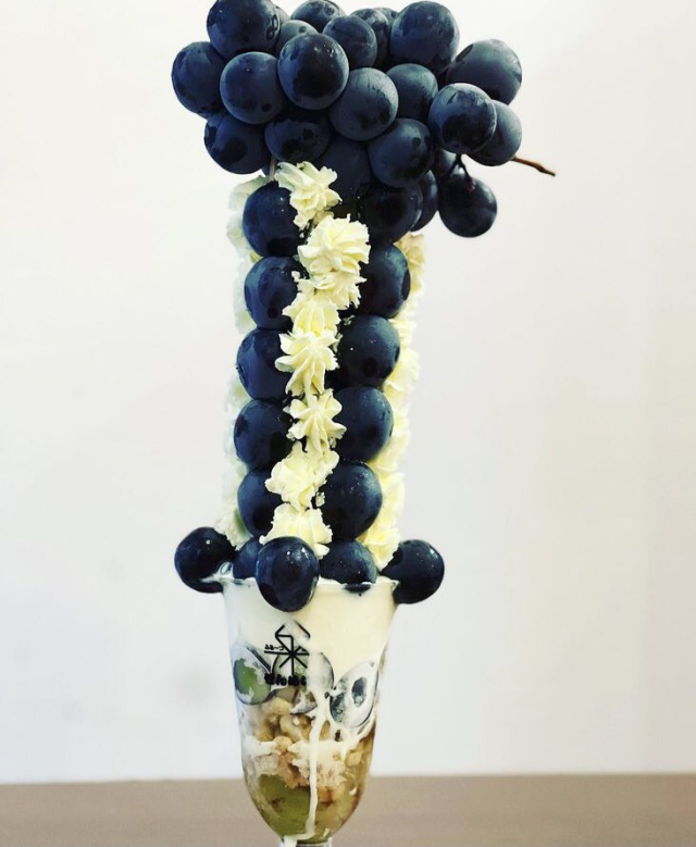 被網友揶揄的就是這個店家推出的「極上葡萄塔」,店家標榜使用高級的巨峰葡萄製作,搭配上鮮奶油與冰淇淋,全高約 30 公分,是店家著名的夏日限定餐點。