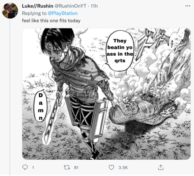 雖然這次合作應該是非常具有吸引力的,不過因為遊戲中的人物造型與《進擊的巨人》原作差異大之外,合作的造型也不大契合,兵長感覺很像是從哪裡穿越過來的樣子 XD。當 PlayStation 官方推特釋出動態影片時,不少網友在底下留言吐槽,表示是看過最怪異的合作了。