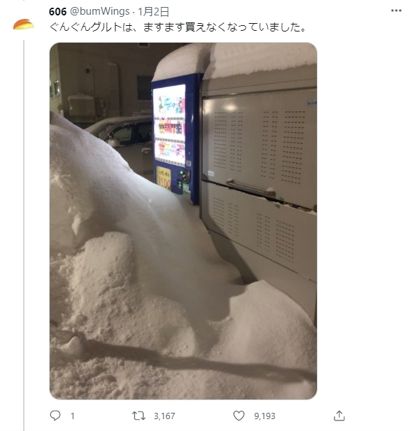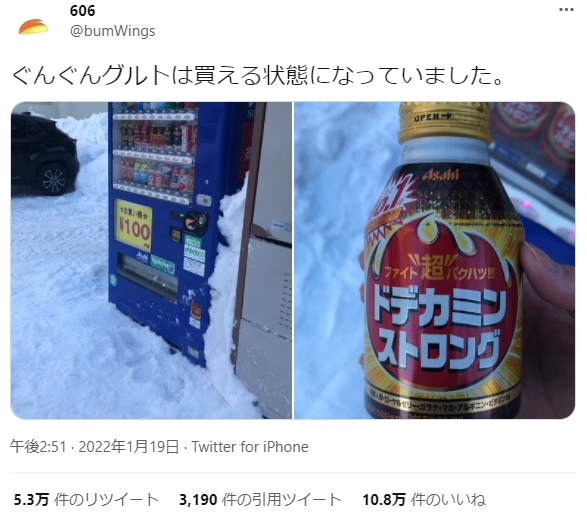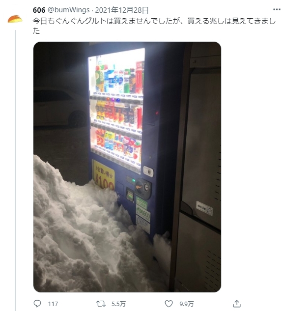 然而奇蹟就這樣發生了,1月19日,推主的故事迎來了大結局:販賣機前的雪居然被除掉了,可以買乳酸飲料啦!!!