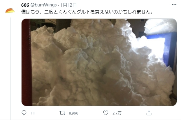 有網友模擬了前一天的情境,說不定是遠處哪裡的Asahi 員工,因為看到推主如此想喝乳酸飲料,才跑去除雪的呢QQ?!萬一真是這樣,想必他們看到結局,心中也會浮現與網友同樣的感受吧……