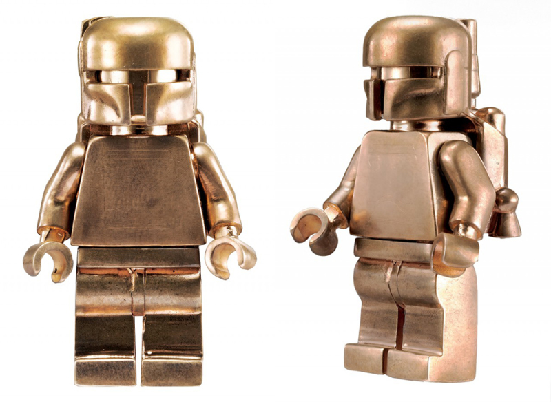 在 2010 年的 SDCC 跟星戰慶典 Celebration V,展示了一套驚人的波巴·費特樂高人偶逸品,分別是塑膠製、共有 10,000 隻的白色波巴·費特,以及全世界各只有兩個、分別以 14K金與紋銀(Sterling Silver)打造的波巴·費特人偶,舊式設計的頭盔、噴射背包相當經典啊!