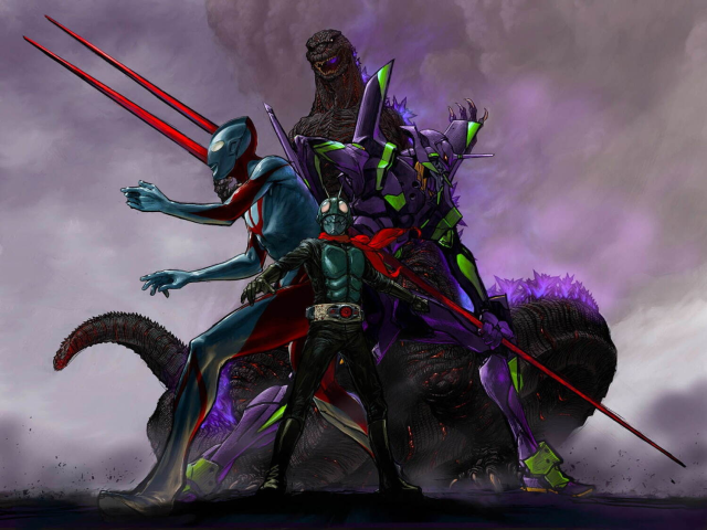 這四部作品 : 《正宗哥吉拉》、《新·超人力霸王》、《新·假面騎士》與《福音戰士新劇場版:終》,將結合東寶、圓谷製作、東映與 Khara 四方,預告將會有相關的商業合作與活動企劃,雖說目前尚未有更詳細的資訊,但已經可以想見「Shin Japan Heros Universe」這會是個「庵野秀明宇宙」的展開了 XD。