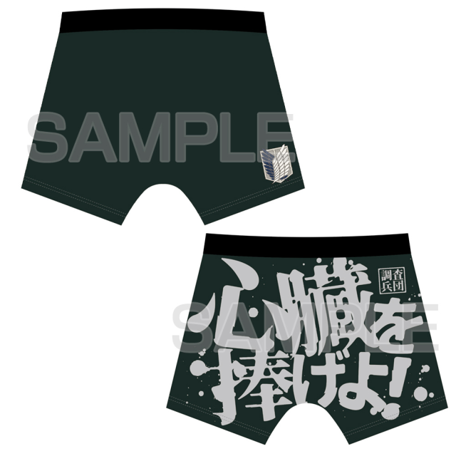 擅長推出各種 COSPLAY 道具與動漫作品週邊的日本 COSPA 公司,先前推出過《機動武鬥傳G鋼彈》東方不敗主題與《新世紀福音戰士》AT 力場&「野獸模式」四角內褲。近日公開了將推出人氣動畫《進擊的巨人》主題的四角內褲,以經典台詞「獻出心臟!」 ( 心臓を捧げよ ) 為標語,展示出你對調查兵團的忠誠。售價均為 2,530 日圓,將於 2022 年 4 月下旬正式發售。