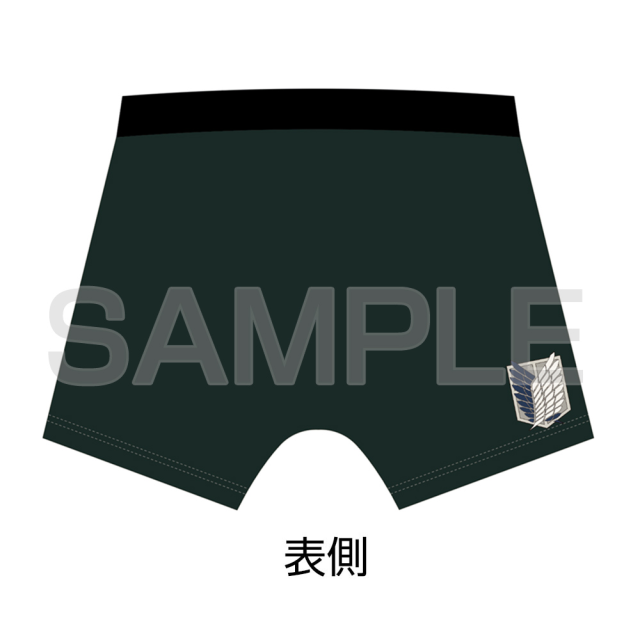 這次 COSPA 推出的「獻出心臟」四角內褲以調查兵團的綠色衣袍為主體顏色,正面左下方有著調查兵團的徽章,簡單明瞭。