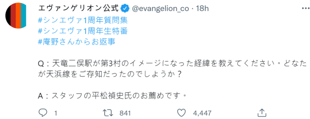 Q : 關於作品《福音戰士新劇場版:終》中第三村參照的天竜二俣車站,是如何選到這個地點作為第三村的參考對象呢 ?