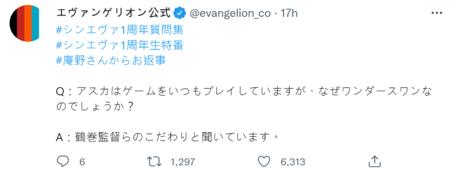 Q : 《福音戰士新劇場版:終》裡明日香遊玩的遊戲機,為何是ワンダースワン(WonderSwan)這款遊戲機呢 ?