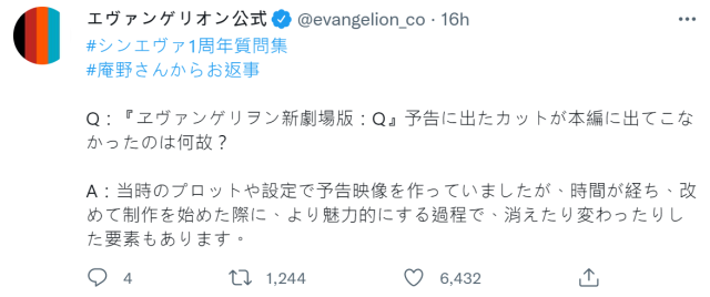 Q : 為何在《福音戰士新劇場版:Q》預告中,有不少片段在本篇電影上映時並沒有出現 ?