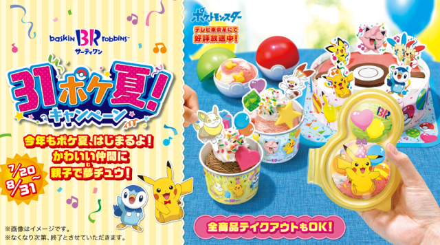 跨國冰淇淋品牌 31 冰淇淋(サーティワンアイスクリーム)先前就與《精靈寶可夢》合作推出過各個節日的企劃商品,這次將推出「31 寶可夢夏日」活動企劃,將推出活動限定的餐點,更有著專屬的包裝,從 2021 年 7 月 20 日至 8 月 31 日止,為期一個月的限量販售。