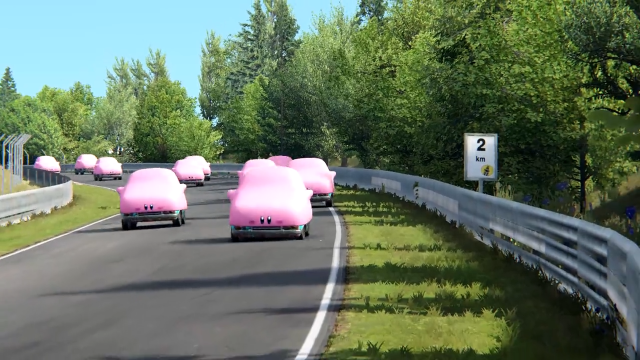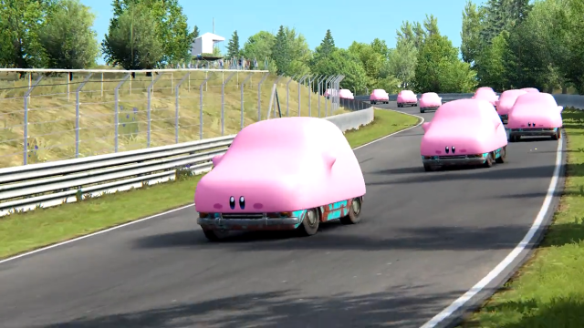 也因為如此,這讓古靈精怪的玩家們也忍不住想,若是把其他賽車電玩的車體模組,換成了MOD大神們所製作的「卡比車車」,那視覺效果上到底會是如何呢?