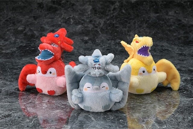 在日本 Twitter、LINE 貼圖超高人氣的小企鵝-正能量企鵝 ( コウペンちゃん ),以可愛全肯定的風格博得不少粉絲愛好。沒想到居然宣布與《遊戲王》合作,與遊戲王非常著名的青眼白龍&三幻神結合在一起,推出可愛造型的絨毛吊飾蛙娃。目前已於官方商店 KAIBA CORPORATION STORE 販售,售價為 2,310 日圓。