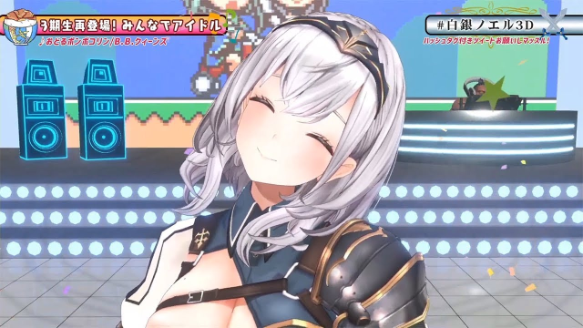 Hololive》三期生,通常被粉絲稱作「團長」的白銀諾艾爾,在設定上是沉穩大方、卻任何事都用力氣去解決的蓬鬆柔軟肌肉腦女騎士,來到 VTuber 界進行武者修行。有著雄偉的雙峰(設定約 K-L 罩杯),擅長進行 ASMR 與遊戲直播,不過在唱歌方面實力堪憂,被粉絲揶揄為「朗讀」系歌手。