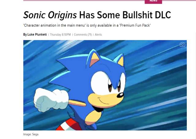對於把本來就內建在遊戲內的遊玩模式,拆分成DLC額外販售的作法,不只是讓玩家完全無法理解這麼做的用意到底是什麼,更是直接在網路上怒嗆SEGA官方吃相難看,就連知名電玩媒體《Kotaku》也毫不忌諱地開罵「最垃圾、最愚蠢的DLC」。