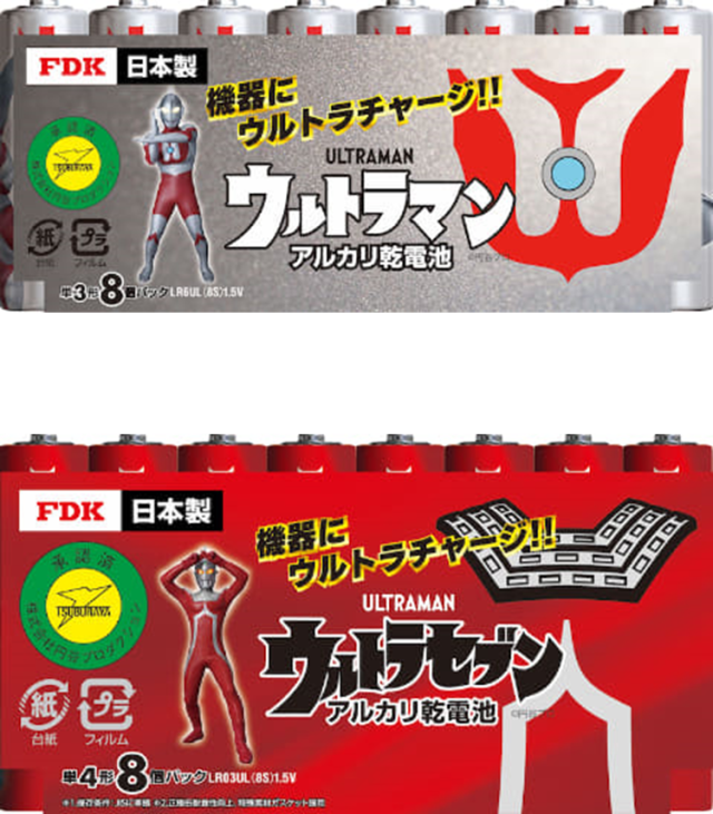 FDK 為為富士通的子公司,除富士通品牌的鹼性電池外,同時也製造販賣自有品牌的鹼性電池。 一直以來都產製高效能且安全的電器與電池聞名,這次選擇與《超人力霸王》合作,選擇了最經典元祖力霸王與系列第二作《超人七號》,分別設計三號電池與四號電池。