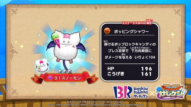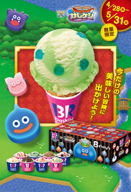 而這次的合作對象為去年才剛推出的消除益智手機遊戲《勇者鬥惡龍擦擦樂!》(暫譯,ドラゴンクエストけしケシ!) ,預計也在今年 6 月推出實體 ( PC ) 版本。本次合作期間也會出現與「31冰淇淋」的合作活動,讓玩家也任務拿獎勵。