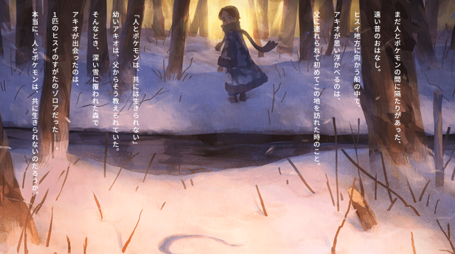 故事主軸講述還在人與寶可夢還有距離的過去,主角アキオ與爸爸一同搭上往洗翠地區船隻的途中,爸爸跟年幼的アキオ說道 : 「人與寶可夢是無法共存的。」然而,在一個深雪覆蓋的森林中,アキオ遇上了 1 匹洗翠地區的寶可夢-索羅亞,究竟人與寶可夢能否一起生活呢 ?