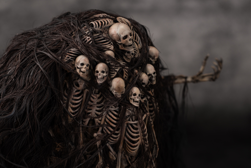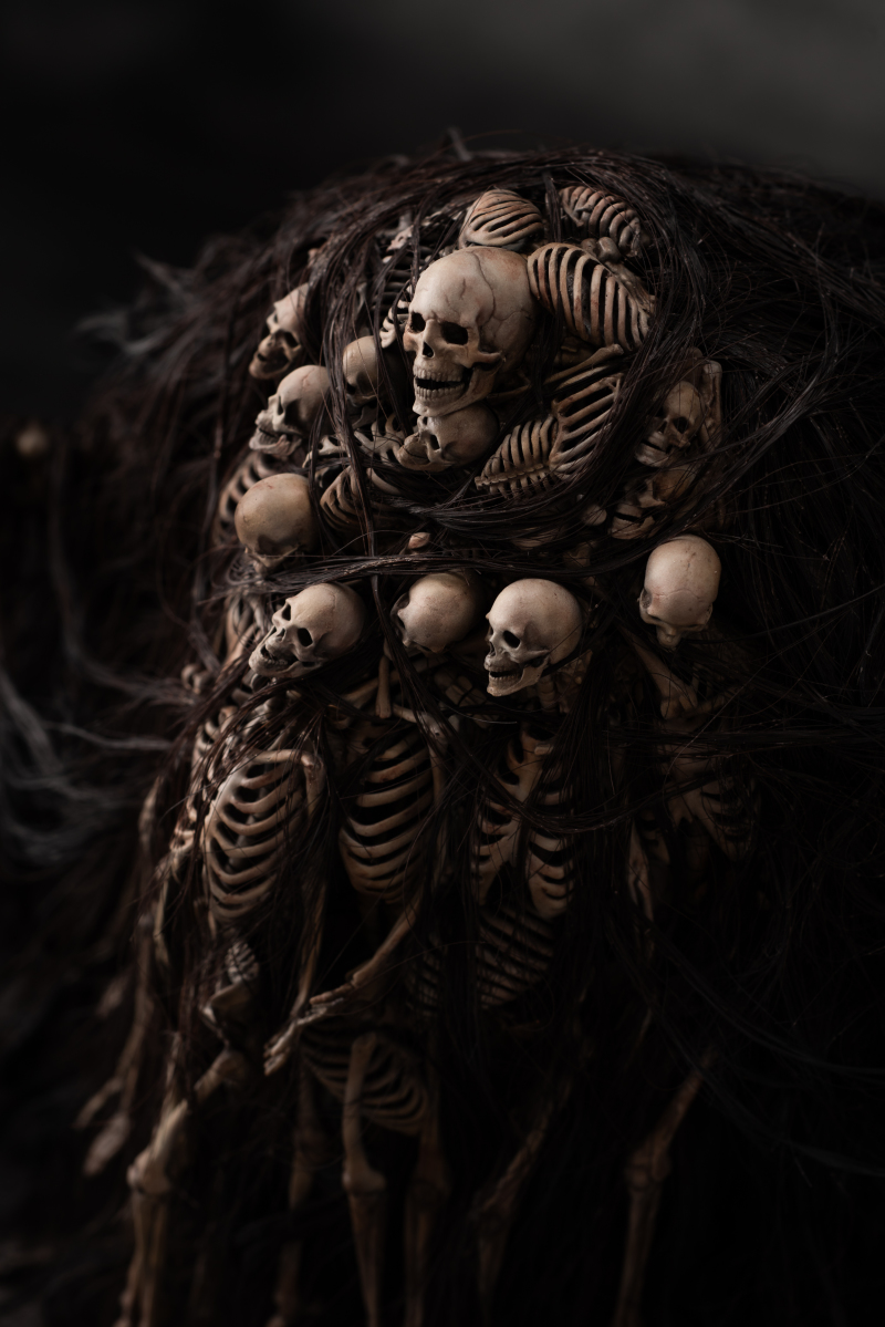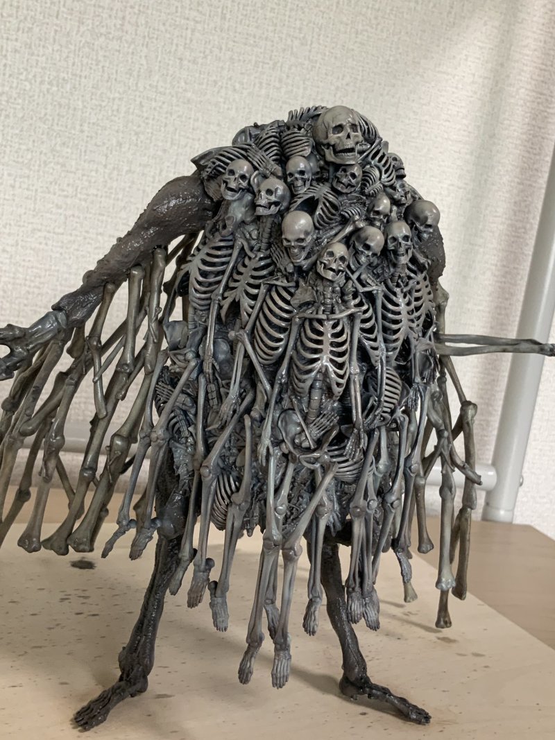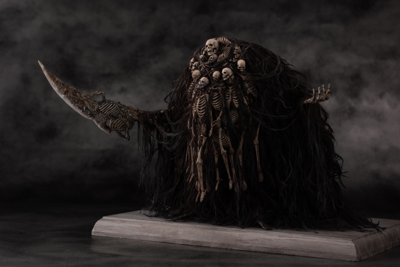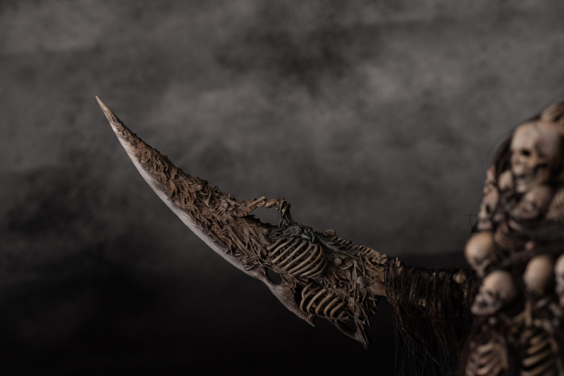 穿越伸手不見五指的巨人墓地,在漆黑深處等待與玩家對決的是「最初的死者」墓王尼特。大量人骨纏繞著毛髮般的斗篷,墓王尼特的設計稱得上是洗練,但漆黑的背景讓那份壓迫、恐怖更為增幅。針桐雙一理所當然地雕塑出造型細膩的骷髏,以 120 個左右的零件組成本體。但更令人驚豔的是那栩栩如生、如絲縷般的斗篷,由 43 束毛髮零件植毛成魄力造型,彷彿人體毛髮般再現捲曲、集束、打結等特性,極為密集讓人不寒而慄。