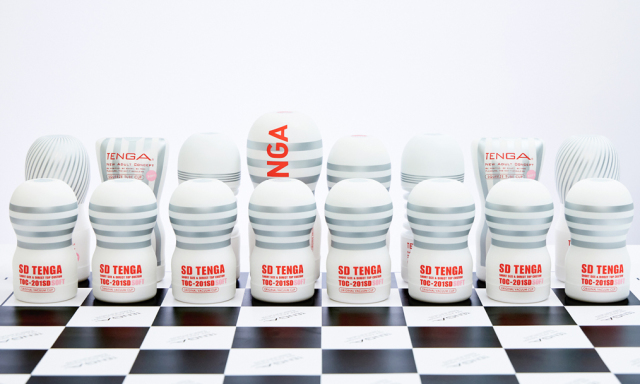 這款以飛機杯為造型的西洋棋套組「Tenga Chess Set」,以32款歷代款式的TENGA飛機杯作為棋子的外觀,並且依照傳統西洋棋一樣,分成了白色款「soft」系列,以及黑色款的「hard」系列。