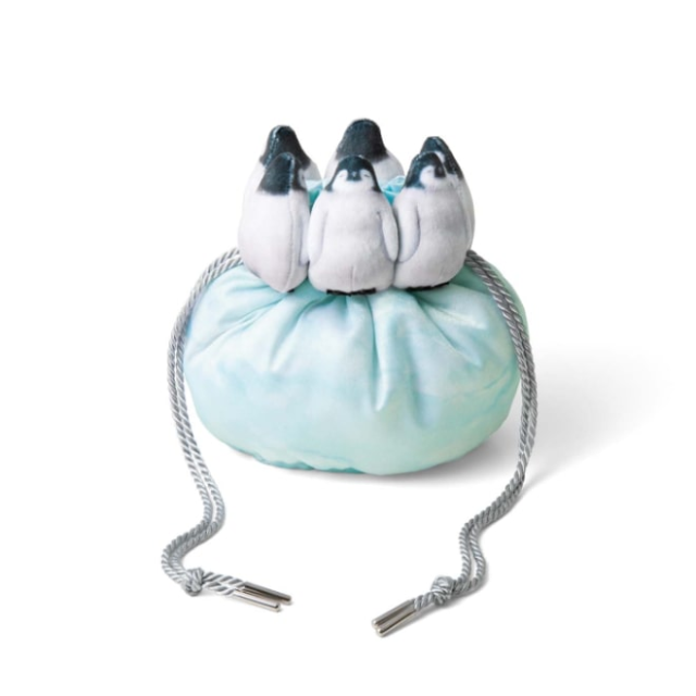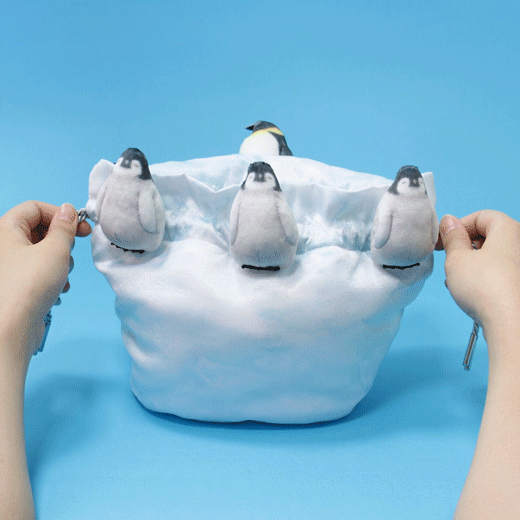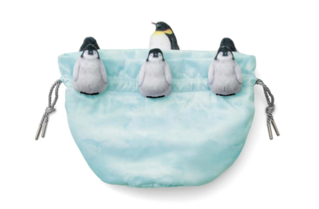 「企鵝團聚抽繩袋」以在南極生活的企鵝群們為靈感,將企鵝設計在抽繩袋的抽繩設計中,只要拉起就可以讓上面的企鵝團團相聚,讓企鵝寶寶們跟大人相聚再一起,超萌的設計絕對是喜歡企鵝的朋友必收之物 !