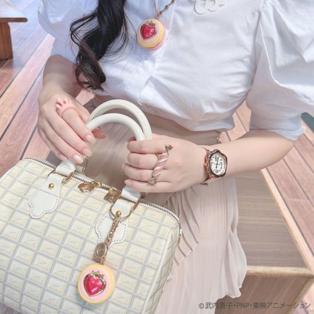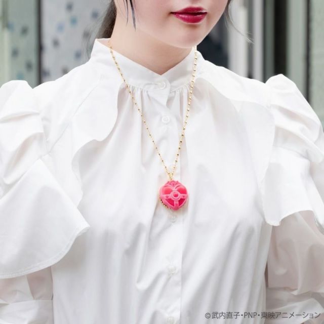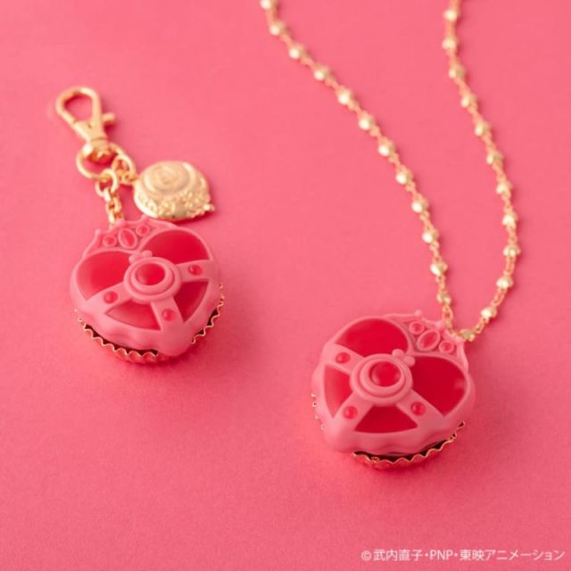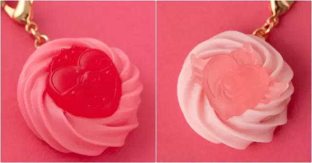 ▼可選擇包包掛飾或項鍊的螺旋愛心變身器,化為粉紅色的杯子蛋糕模樣。(包包掛飾12,760JPY,項鍊13,860JPY)