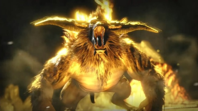 「金獅子」首次登場於《魔物獵人 2》,是中等體型的靈長類牙獸,也是牙獸種中最強的一員,有著一對堅硬的大角和獅子般的茂密鬃毛,堪稱牙獸之王。武器主要製作為金獅子銃槍與防具,當然也是不少玩家的狩獵目標。