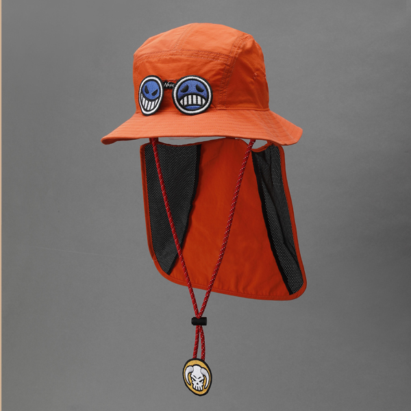 依照艾斯原設定的帽款做設計,改造為戶外機能的漁夫帽,後方的可拆卸襯布也可以因應不同情況使用。另外帽款附上三款布章,可以隨興搭配在你的服飾、包款或是帽子上,展現不同的效果。