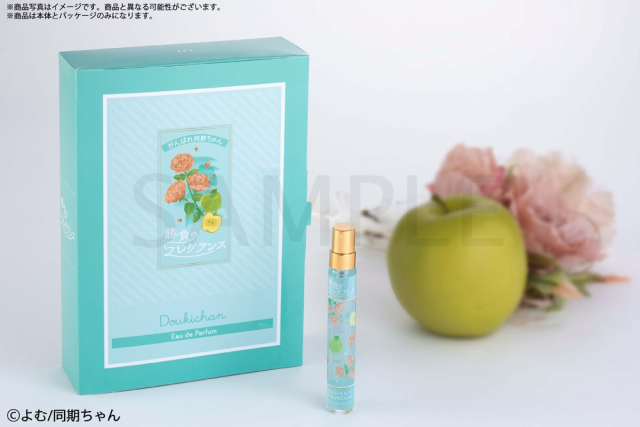 以湖水綠做為基礎色系,氣味聞起來一開始是清新的青蘋果果香,到中段是華麗的玫瑰花香,最後的白麝香營造出優雅的柔和感,非常適合在職場上使用。富有專屬收納盒收藏,打開內部可以看到同期醬在動畫中的圖片與插圖。