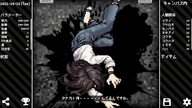 而在遊戲中等待玩家的事件並不單純,周遭的人失蹤、有人退學……能否順利畢業,甚至順利避免發瘋,都得要看玩家的表現了。