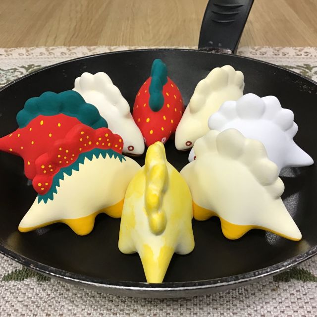 所有的餃札魯斯都是出自手繪、一隻一隻畫出來的。最近推特網友「ちくちくサウルス」貼出他收到的餃札魯斯,可愛的設計馬上就得到超過9.6萬個喜歡,結合餃子與恐龍的呆萌模樣,真的讓人很想買一整排放在家裡啊……