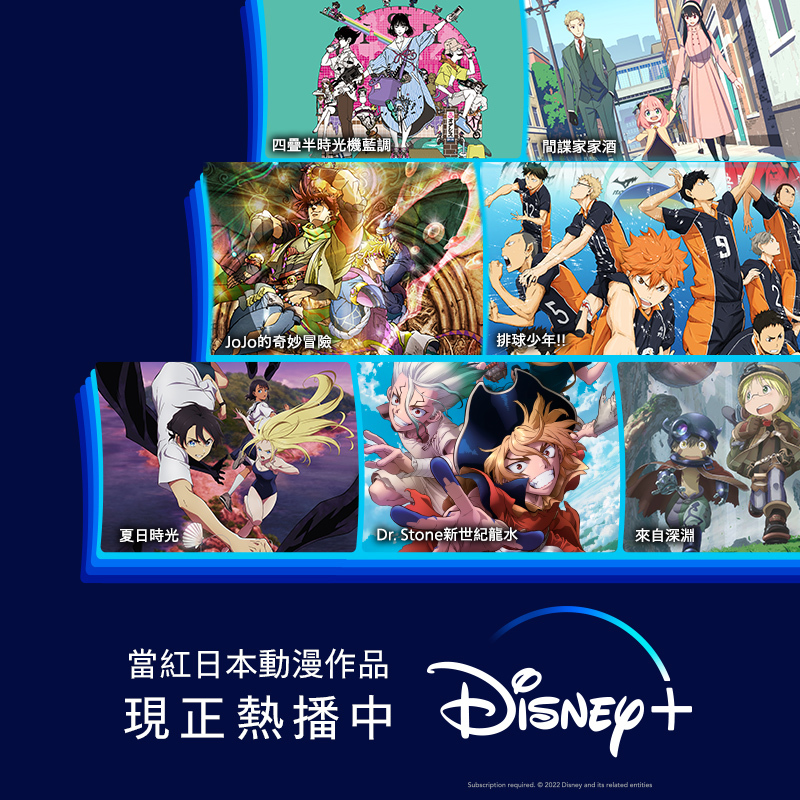 坐擁眾多知名IP與獨家內容的Disney+為了提供訂閱者最多元類型的影視選擇,勇於突破市場框架,志於實現影視愛好者多年來期盼能一網打盡所有電影、影集、節目等精彩內容的心願,如今不只歐美動畫,連日本動畫也都能在Disney +上陸續追到了,手指…手指…腦波…腦波…是不是不爭氣想點下訂閱Disney +了呢?!想知道Disney +還會持續推出哪些日本動畫或更精采的影視作品嗎?