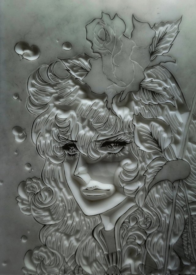 我們曾經介紹過一位手藝「跟鬼一樣」的業餘橡皮雕刻家「キトリ」,他將知名的19世紀捷克畫家「慕夏」的畫作呈現在橡皮擦上,蓋出非常驚人的精細度。而前陣子他又挑戰了大家熟知的《凡爾賽玫瑰》的主角奧斯卡,